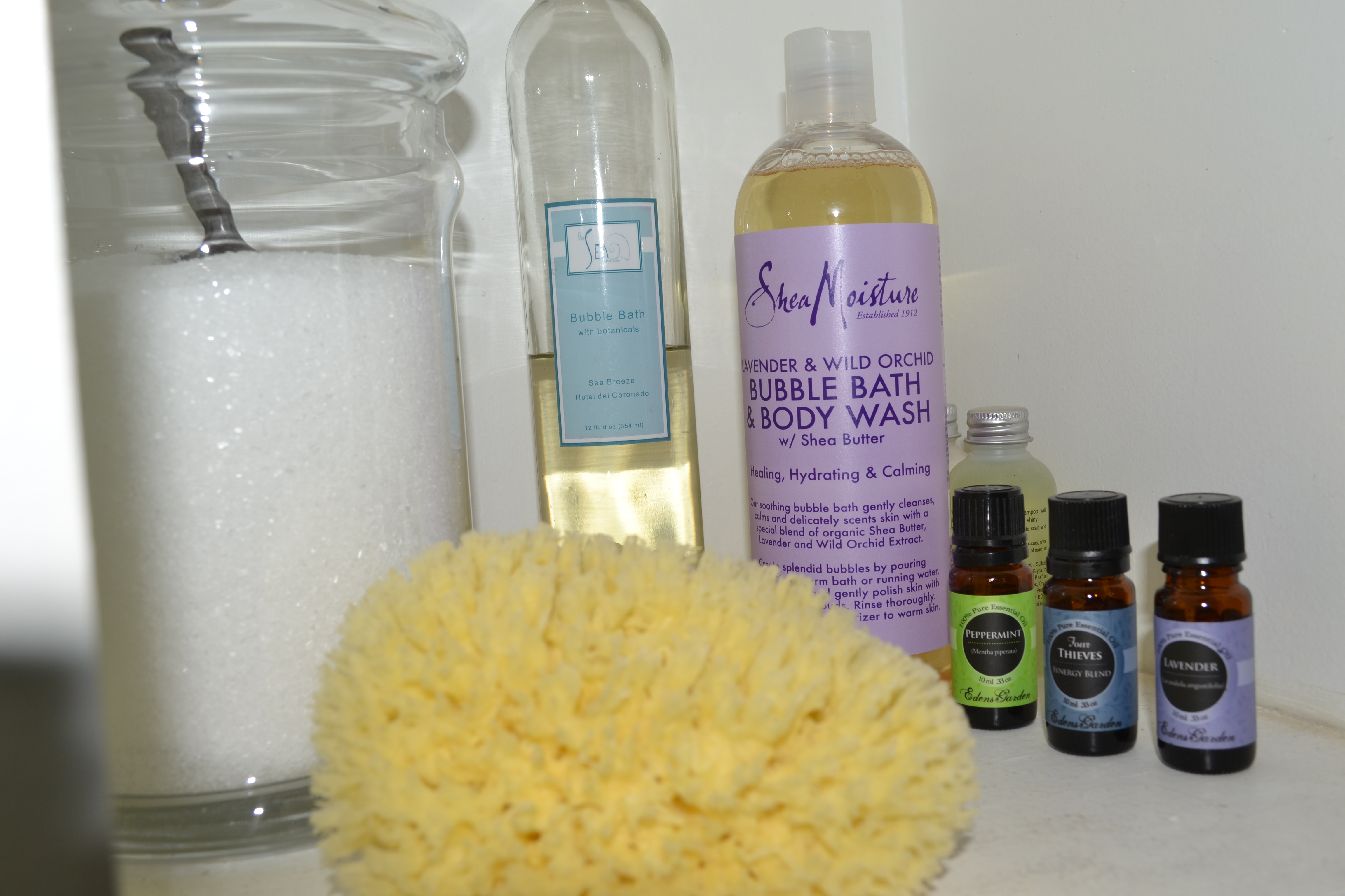 I love to keep spa evenings simple. Good old fashioned epsom salts with some essential oils and bubble bath are all I need. This mixture will relieve aching muscles, help you sleep soundly, and awake completely restored. You can purchase epsom salts at any drugstore and specialty markets, like Whole Foods, carry essential oils. I prefer to purchase essential oils online from Edens Garden.