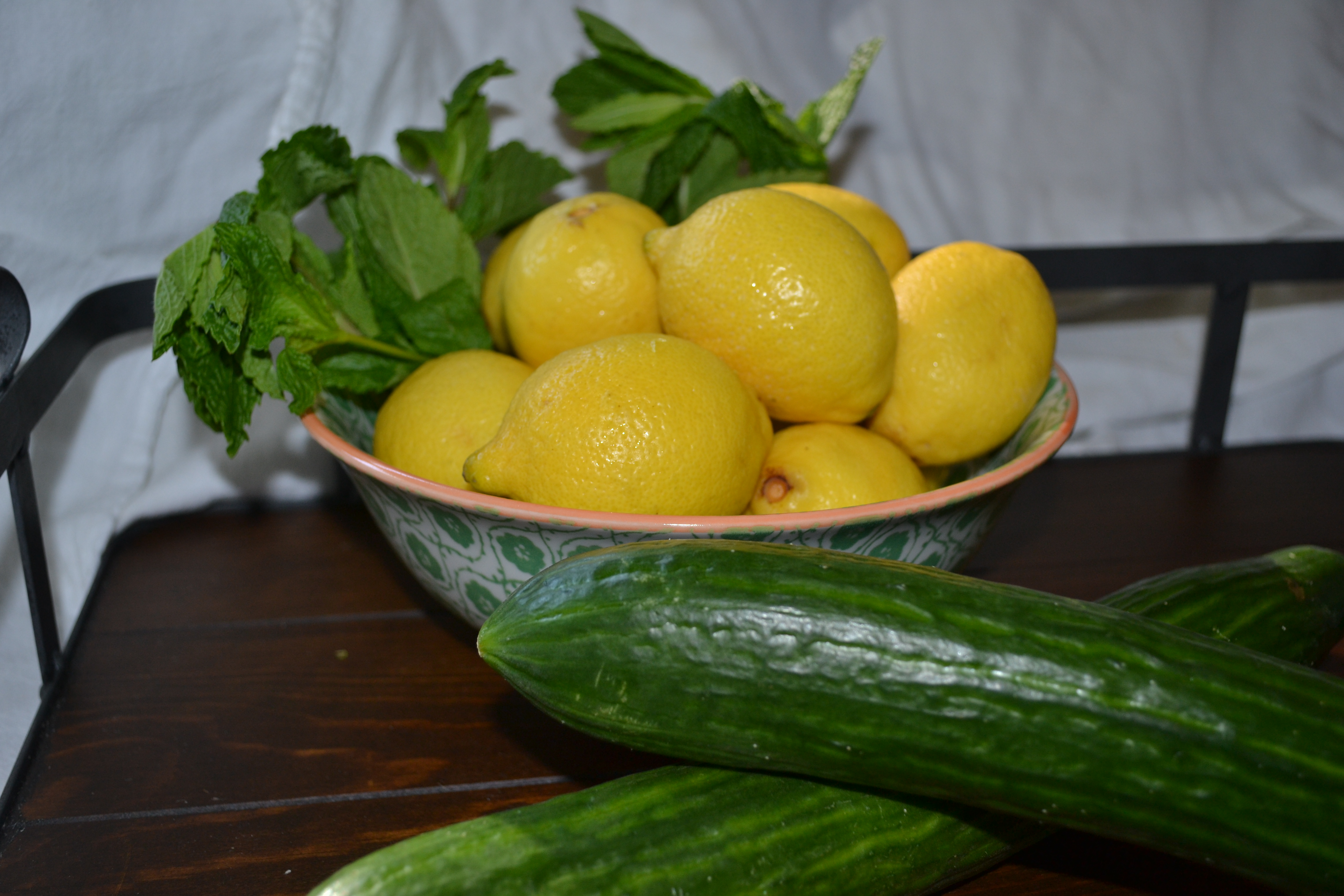 Hostess Tip: Make some infused water by slicing up a cucumber and a lemon then throw in a handful of mint leaves. Combine all in an extra large mason jar and top off with water. Refrigerate for at least and hour.